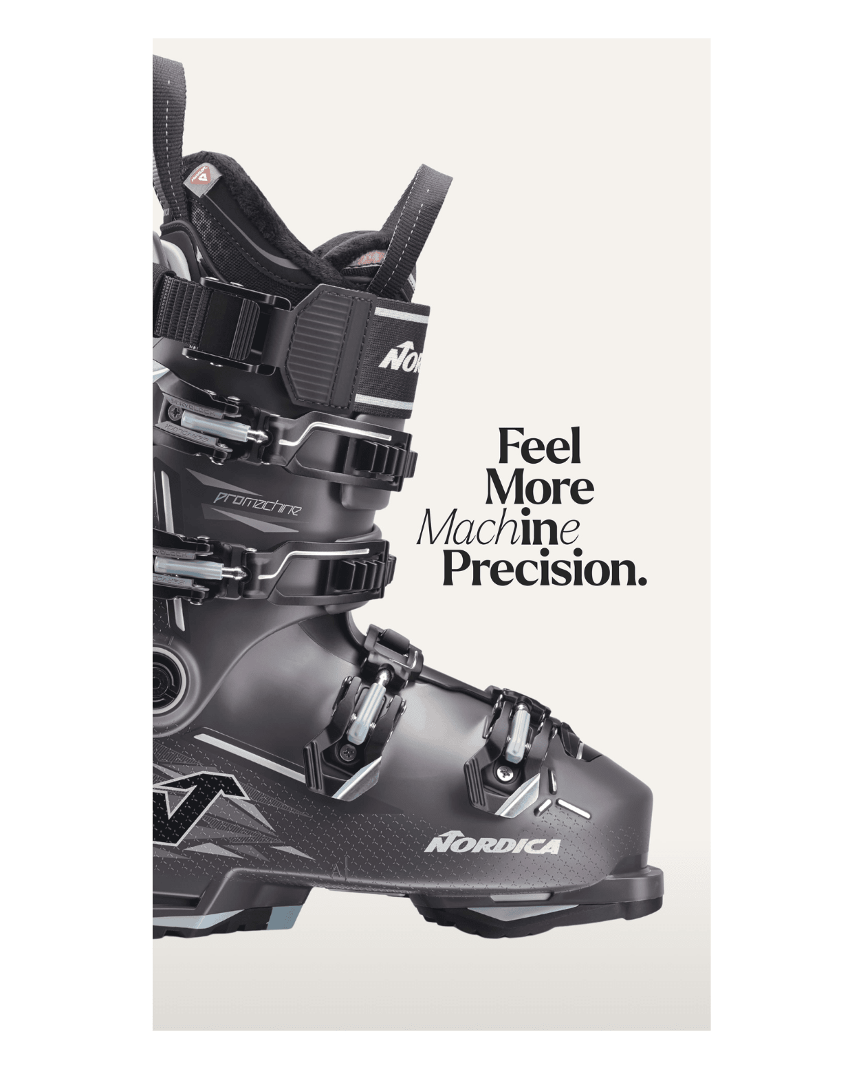Promachine-serien är byggd för åkare som prioriterar kontroll, kraft och känsla i pist. I Promachine 3 115 W har Nordica finjusterat balansen mellan aggressiv respons och åkkomfort genom att kombinera en styv men progressiv flex med en exakt passform runt häl och vrist.