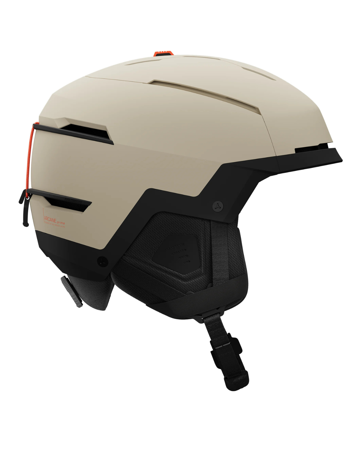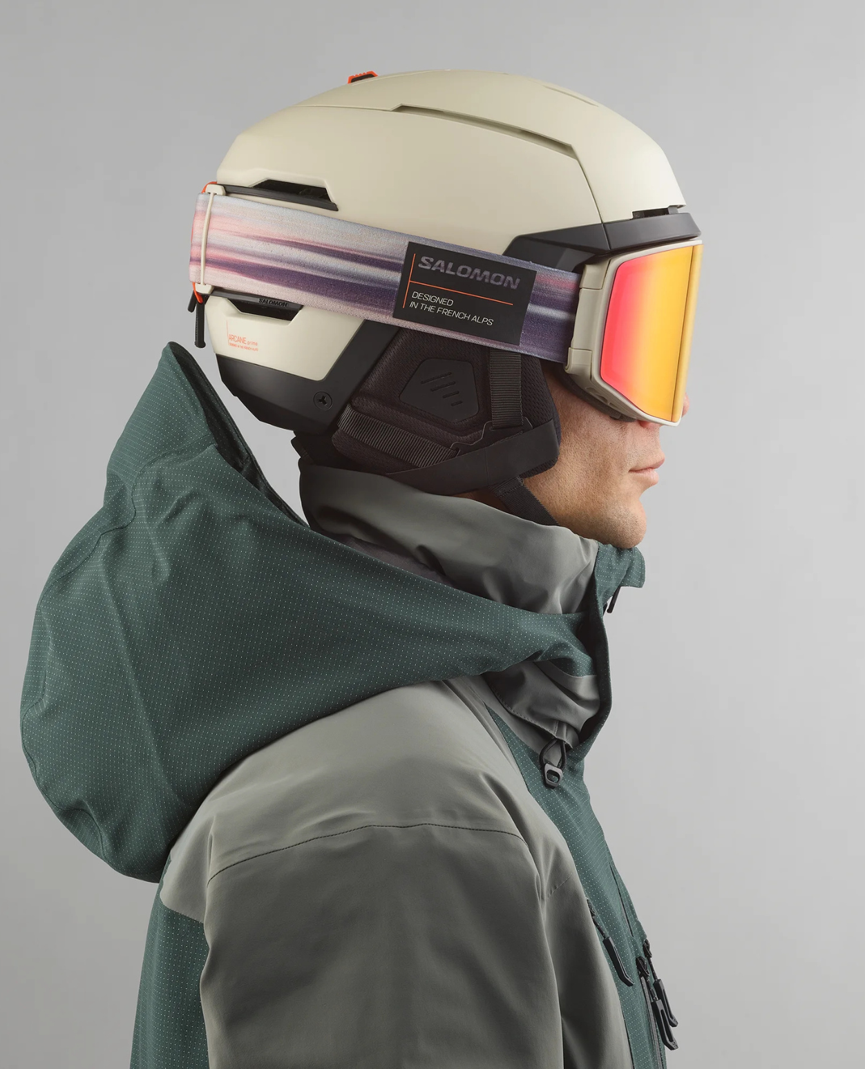 FIDLOCK® magnetspänne som klickas enkelt även med handskar, avtagbara 3D-öronkuddar samt sömlös integration med Salomon-goggles för perfekt passform utan glipor.